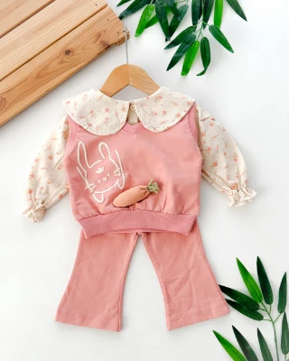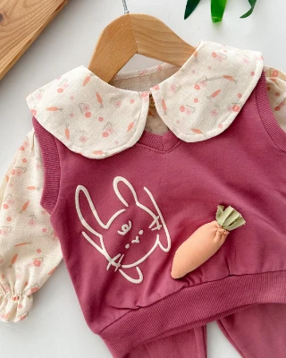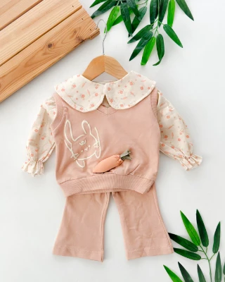 3D havuç kabartmalı tavşan baskılı bebe yaka gömlekli mevsimlik 2 parça takım Bebek Durağı Bebek ve Çocuk Giyim | Bebek Durağı | bebekduragi.com.tr