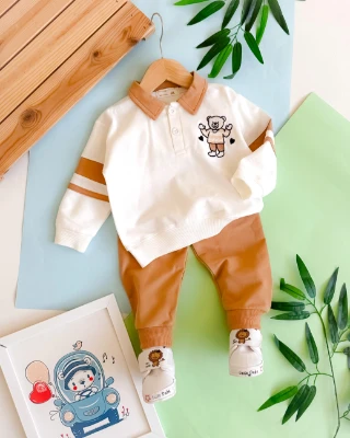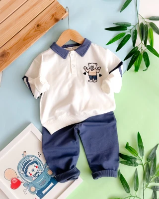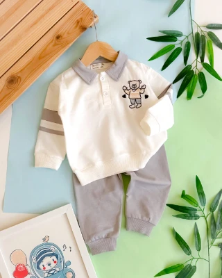 Ayı ve kalp nakış işlemeli önden düğmeli mevsimlik 2 parça takım Bebek Durağı Bebek ve Çocuk Giyim | Bebek Durağı | bebekduragi.com.tr