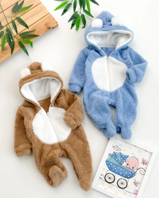 Ayıcık kulak kapüşon detaylı boydan fermuarlı ayaklı welsoft kışlık tulum Bebek Durağı Bebek ve Çocuk Giyim | Bebek Durağı | bebekduragi.com.tr