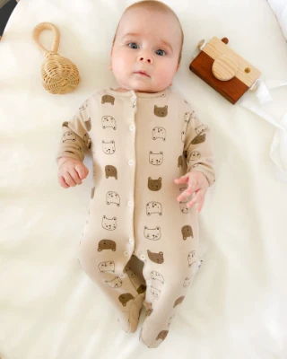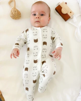 • Bear face desen boydan çıtçıtlı ayaklı mevsimlik 3lü tulum set