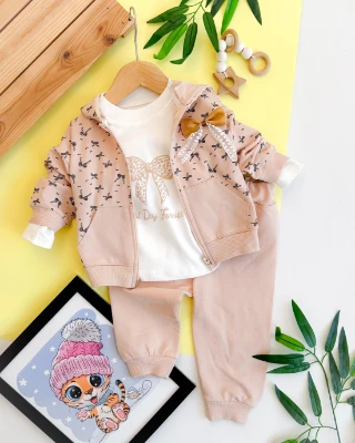 • Best day forever baskılı kapüşon hırkalı mevsimlik 3 parça takım