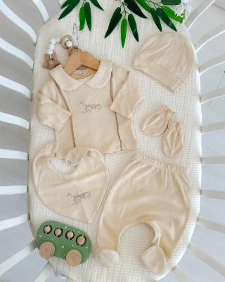• Car nakış detaylı erkek yenidoğan hastane çıkışı