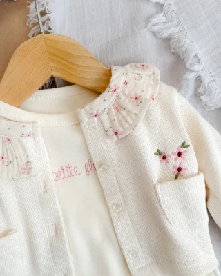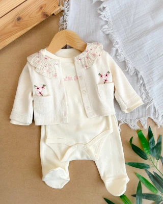 Cepten çıkan renkli çiçekler detaylı alttan çıtçıt badili ayaklı mevsimlik 3 parça takım Bebek Durağı Bebek ve Çocuk Giyim | Bebek Durağı | bebekduragi.com.tr