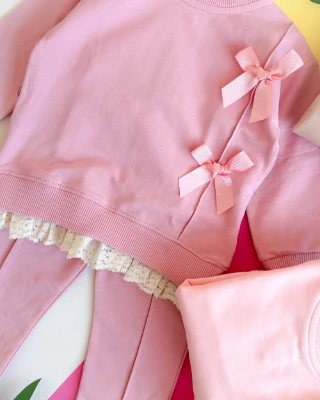 Çift fiyonk kurdela detaylı güpürlü mevsimlik 2li takım Bebek Durağı Bebek ve Çocuk Giyim | Bebek Durağı | bebekduragi.com.tr