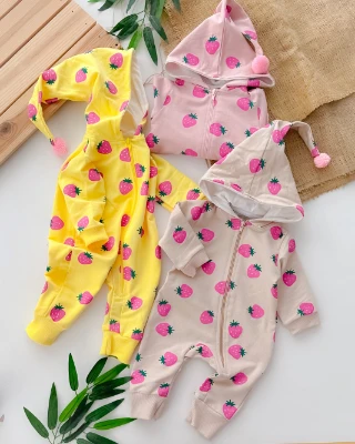 Çilek desen baskılı fermuarlı kapüşonlu mevsimlik tulum Bebek Durağı Bebek ve Çocuk Giyim | Bebek Durağı | bebekduragi.com.tr