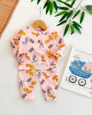 Çizgi film karakter baskılı omuzdan çıtçıtlı mevsimlik penye kumaş 2li takım Bebek Durağı Bebek ve Çocuk Giyim | Bebek Durağı | bebekduragi.com.tr