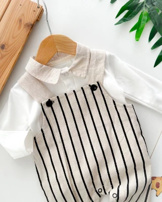 Dikey çizgi desenli gömlek yaka badili mevsimlik salopet set Bebek Durağı Bebek ve Çocuk Giyim | Bebek Durağı | bebekduragi.com.tr