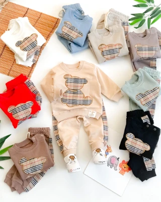 Ekose ayıcık detay omuzdan çıtçıtlı mevsimlik 2li takım Bebek Durağı Bebek ve Çocuk Giyim | Bebek Durağı | bebekduragi.com.tr