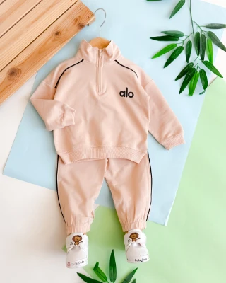 Fermuar detay alo yazılı şeritli eşofman mevsimlik 2li takım