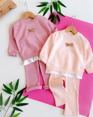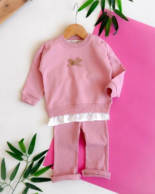 Fiyonk çiçek broş sahte puantiye gömlek detaylı mevsimlik 2li takım Bebek Durağı Bebek ve Çocuk Giyim | Bebek Durağı | bebekduragi.com.tr