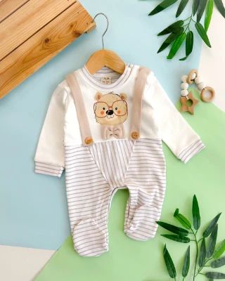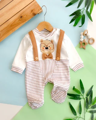 • Gözlüklü ayıcık sahte askı çizgili alttan ve omuzdan çıtçıtlı ayaklı mevsimlik tulum
