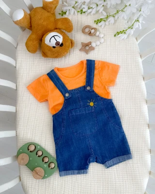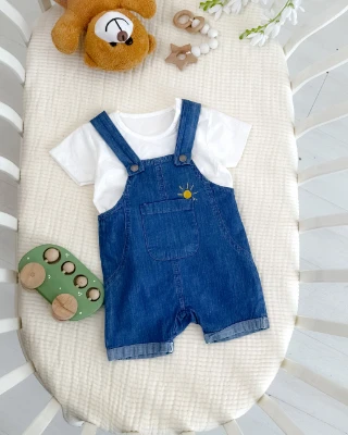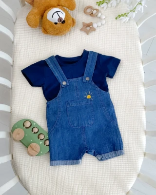 Güneş cep detay omuzdan çıtçıt tshırt yazlık slopet 2li set Bebek Durağı Bebek ve Çocuk Giyim | Bebek Durağı | bebekduragi.com.tr