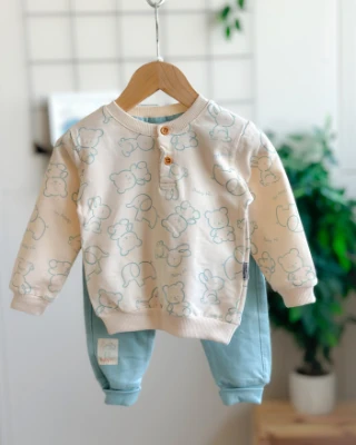 Hi animal baby desen yakadan düğme detaylı mevsimlik 2li takım Bebek Durağı Bebek ve Çocuk Giyim | Bebek Durağı | bebekduragi.com.tr