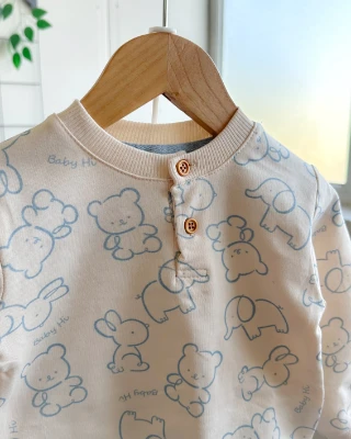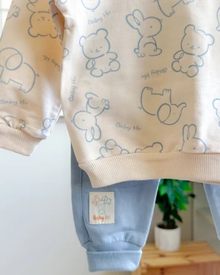 • Hi animal baby desen yakadan düğme detaylı mevsimlik 2li takım