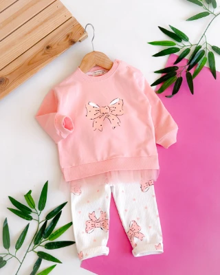 Kalp fiyonk baskılı tül detaylı taytlı mevsimlik 2li takım Bebek Durağı Bebek ve Çocuk Giyim | Bebek Durağı | bebekduragi.com.tr
