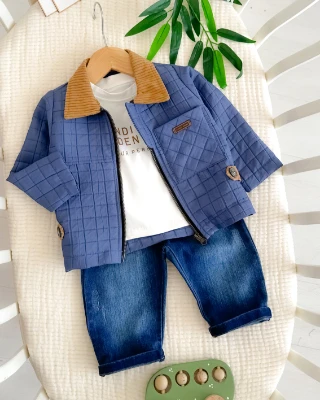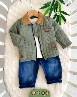• Kapitone ceketli premium bayramlık 3lü bebe takım