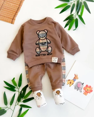 Love the bear çizgi detay omuzdan çıtçıtlı mevsimlik 2li takım