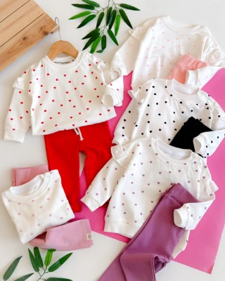 • Minik kalpler desen kollarda fırfır detay taytlı mevsimlik 2li takım