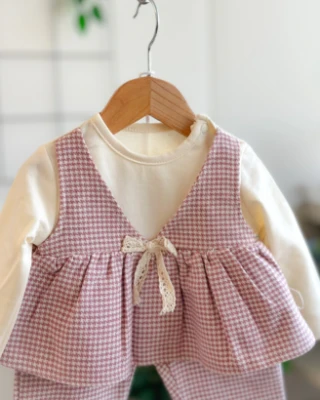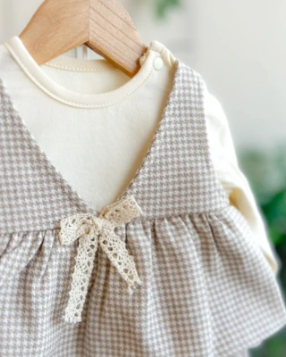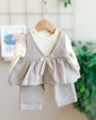 Minik kazayağı desenli robandan fırfır detaylı 2 parça takım Bebek Durağı Bebek ve Çocuk Giyim | Bebek Durağı | bebekduragi.com.tr