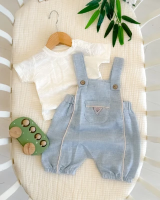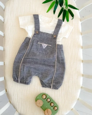 • Önde cep detaylı keten 2li yazlık salopet takım
