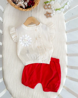 • Papatya detaylı şortlu yazlık kız bebe takım