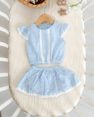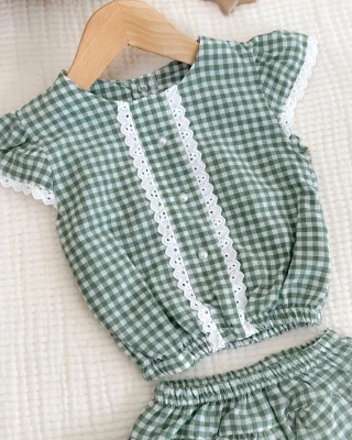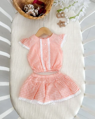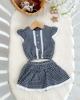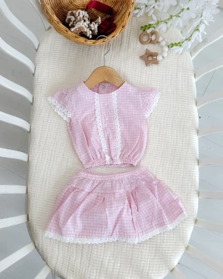 • Pötikare dantel detaylı kendinden kilotlu yazlık 2li kız bebe takım