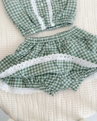 Pötikare dantel detaylı kendinden kilotlu yazlık 2li kız bebe takım