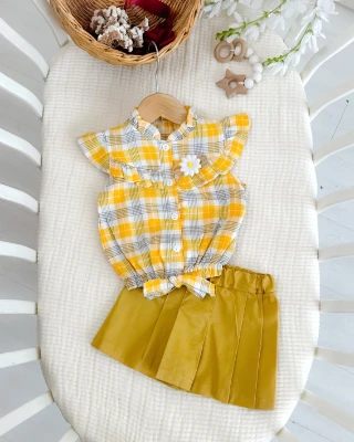 Pötikare gömlekli etek görünümlü şortlu yazlık kız bebe takım
