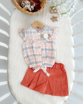 • Pötikare gömlekli etek görünümlü şortlu yazlık kız bebe takım