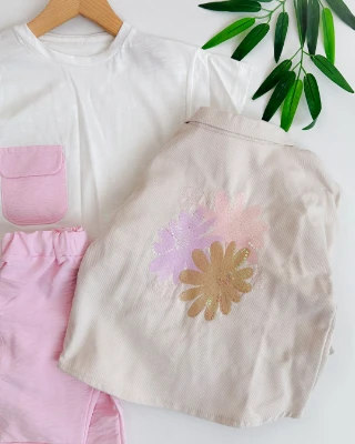 Pul detaylı çiçek nakış ceketli mevsimlik 3 parça takım Bebek Durağı Bebek ve Çocuk Giyim | Bebek Durağı | bebekduragi.com.tr