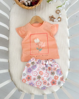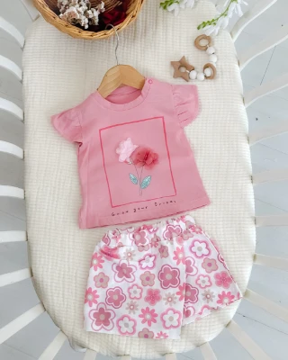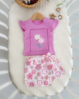 Renkli çiçekler şort etekli yazlık 2li kız bebe takım