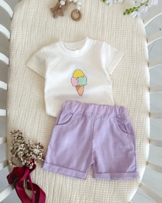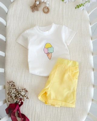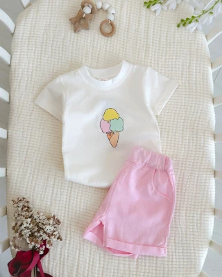 Renkli dondurma keten şortlu yazlık 2li takım Bebek Durağı Bebek ve Çocuk Giyim | Bebek Durağı | bebekduragi.com.tr