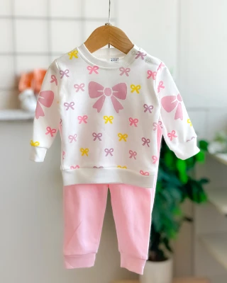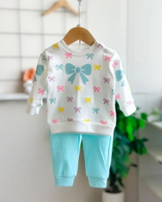 • Renkli fiyonklar baskılı omuzdan çıtçıtlı mevsimlik 2 parça takım