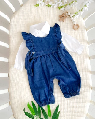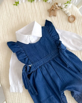 Yandan bağlama detaylı gömlekli alttan çıtçıtlı tulum set Bebek Durağı Bebek ve Çocuk Giyim | Bebek Durağı | bebekduragi.com.tr