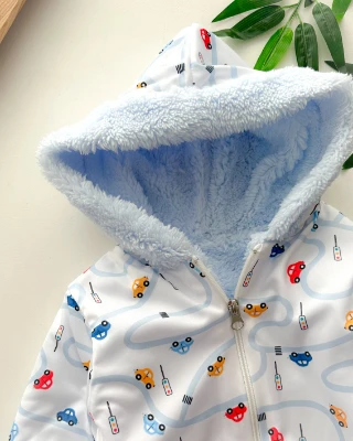Yollar ve arabalar baskılı boydan fermuarlı içi kürklü kışlık welsoft tulum Bebek Durağı Bebek ve Çocuk Giyim | Bebek Durağı | bebekduragi.com.tr